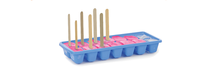 - Pour the mixture into each section of an ice cube tray. Place an ice pop stick in the middle of each cube. Then put the ice cube tray into the freezer. Wait a minimum of 4 hours, remove the ice pops and enjoy!