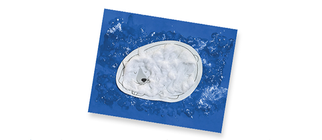 - Give each child a copy of the skill sheet. Guide them as they cut out the polar bear and glue the polar bear onto a sheet of blue construction paper. Then have children add glue to the polar bear’s body, being sure to spread the glue to completely cover it.
