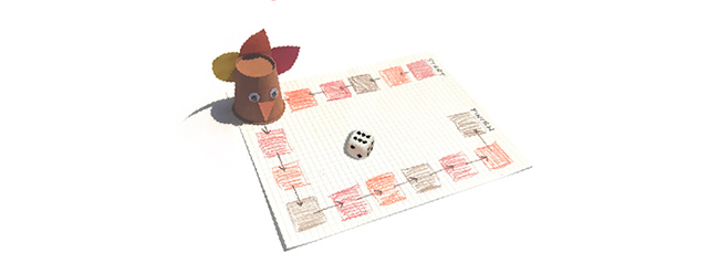 - Tell students that they will make their own turkey game pieces. Give each student a paper cup, feathers, and a set of markers. Have them use glue to attach the feathers to the back of their game piece and use markers to draw a face on the front. They can add googly eyes if they’d like. Let the glue dry.